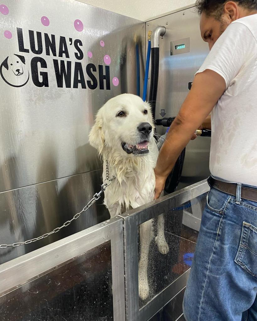 Luna’s Dog Wash was started by us, a small Californian Family and their two dogs, Luna and Teddy. Luna was our pride and joy, a Great Pyrenees mix with all the right spunk! She had a beautiful white double coat, making it near impossible to keep her clean and her shedding controlled. Thus, our idea was born, a self-serve dog wash that makes it easy for all pet parents to keep up with their dog’s hygiene. Although Luna has passed, our vision lives on through each and every family that walks through our doors.